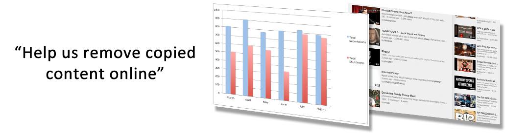 • We scour video sharing sites, including Youtube, and P2P file sharing sites and manage the enforcement programs if required. Digital finger printing is used if the project scope and volume of matches requires. However, a research-based approach can often be more cost effective for removing the high visibility links in priority countries or platforms.